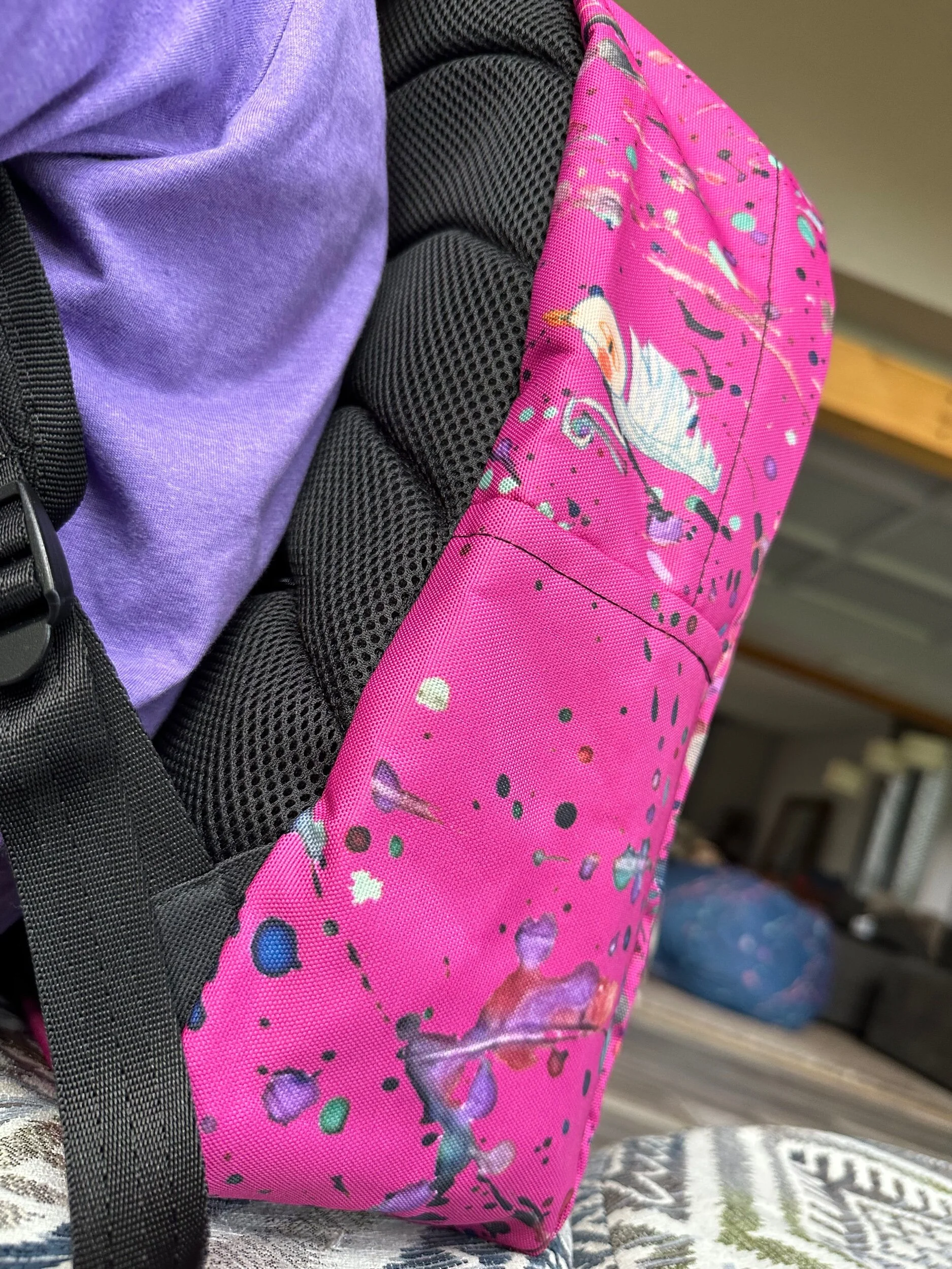 • Padded ergonomic bag straps from polyester with plastic strap regulators